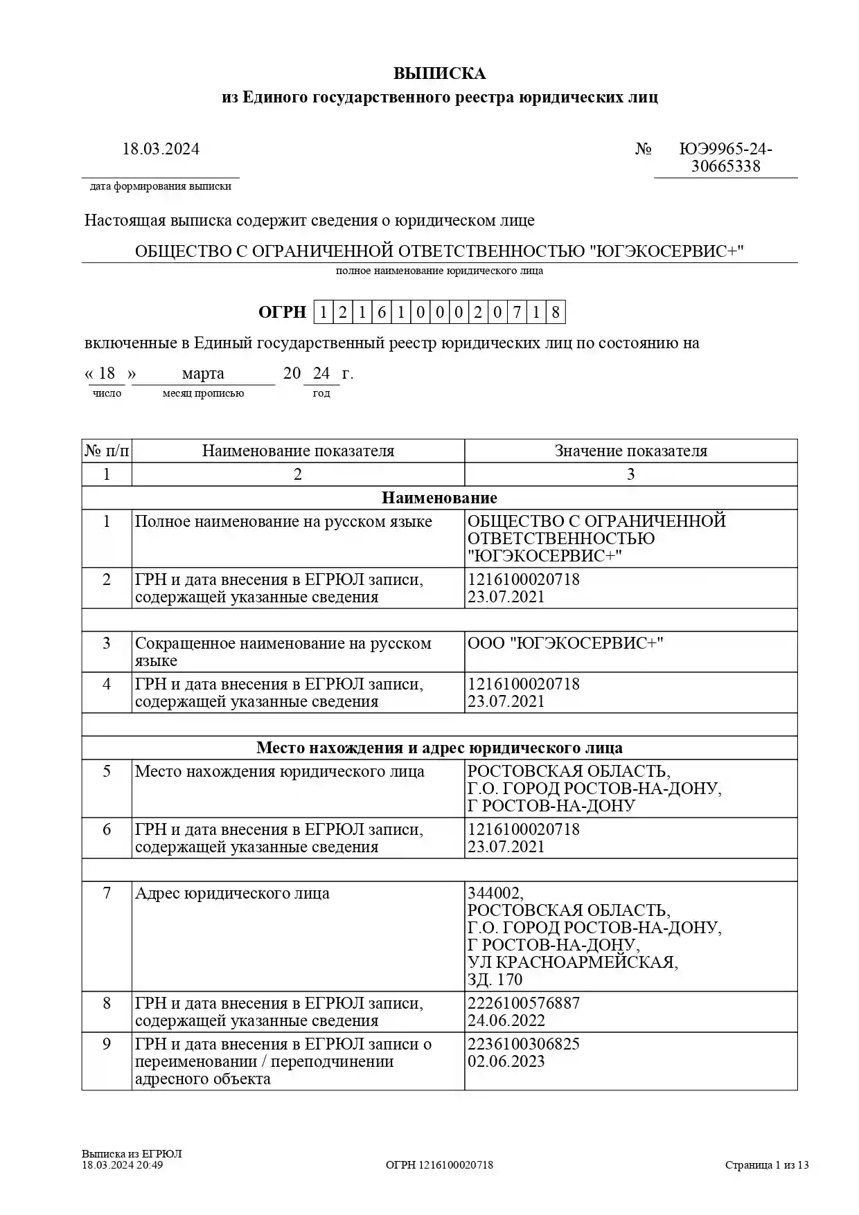 Выписка из ЕГРЮЛ